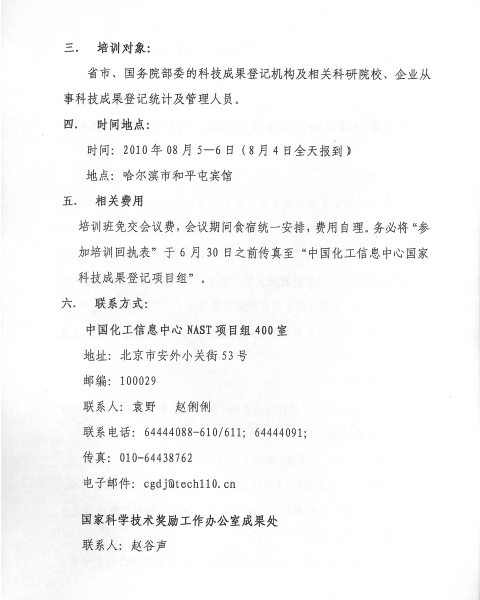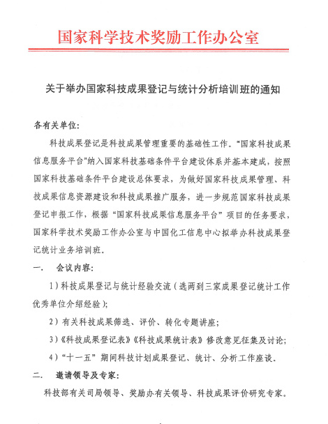 關于舉辦國家科技成果登記與統(tǒng)計分析培訓班的通知