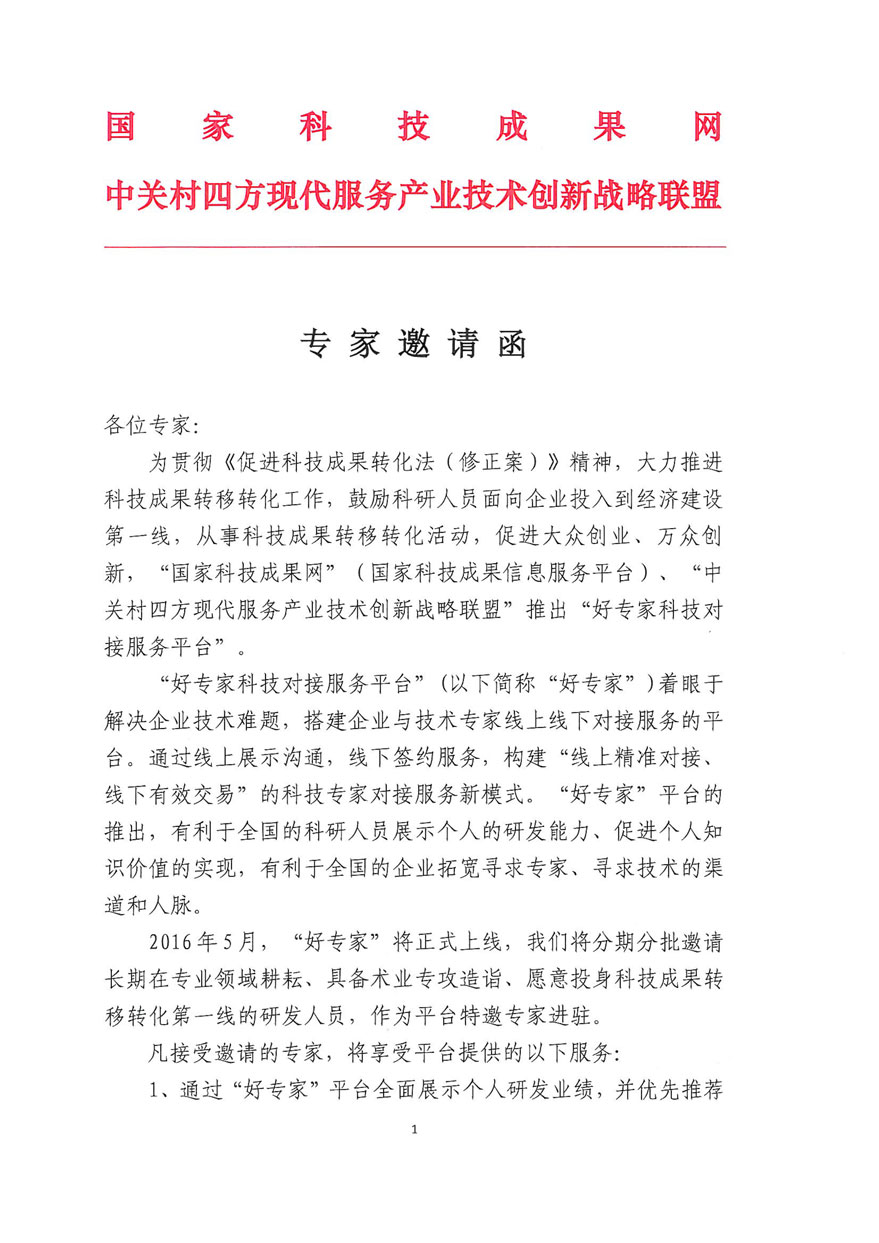 邀請| “好專家”科技對接服務(wù)平臺專家邀請函