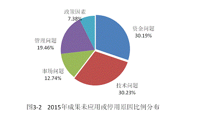 表3-8 2015年社會(huì)項(xiàng)目成果未應(yīng)用或應(yīng)用后停用的原因比例分布(%)