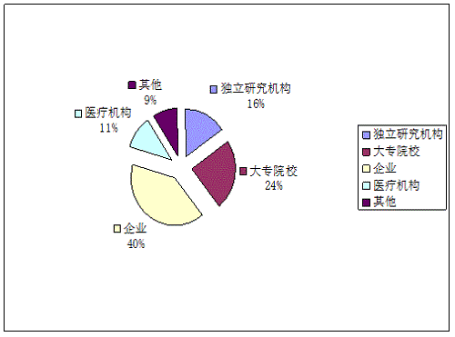 在登記的237項(xiàng)科技成果中,獨(dú)立科研機(jī)構(gòu)完成37項(xiàng)約占16%,大專院校完成56項(xiàng)約占24%,企業(yè)完成95項(xiàng)約占40%,醫(yī)療機(jī)構(gòu)完成27項(xiàng)約占11%,其他完成22項(xiàng)約占9%。數(shù)據(jù)表明,企業(yè)完成成果數(shù)量位列第一。