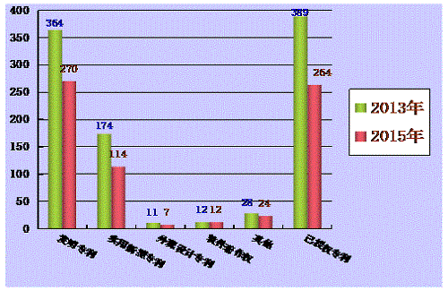 三是沒有將2014年的成果登記數(shù)據(jù)納入到2015年的成果統(tǒng)計(jì)中,是因?yàn)榇筮B市2014年度科技獎(jiǎng)勵(lì)申報(bào)工作尚未開展,致使2014年的科技成果登記項(xiàng)目數(shù)大幅減少,科技成果統(tǒng)計(jì)分析工作不能按照往年的形式進(jìn)行。