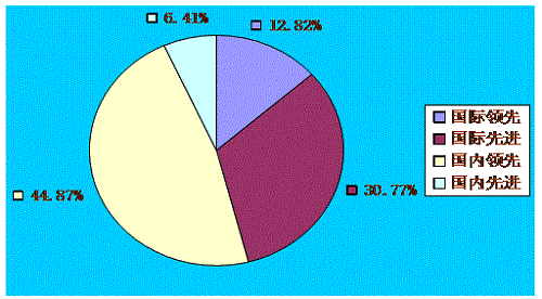 根據(jù)我市2015年78項(xiàng)應(yīng)用技術(shù)成果水平的分類統(tǒng)計(jì),達(dá)到國際領(lǐng)先水平的10項(xiàng),占12.82%;達(dá)到國際先進(jìn)水平的24項(xiàng),占30.77%;達(dá)到國內(nèi)領(lǐng)先和國內(nèi)先進(jìn)水平的成果總共40項(xiàng),占51.28%,其中達(dá)到國內(nèi)領(lǐng)先水平的就有35項(xiàng),占44.87%。(見圖5)