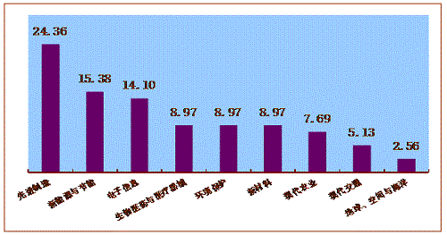 圖7 2015年科技成果所屬高新技術(shù)領(lǐng)域分布情況(%)