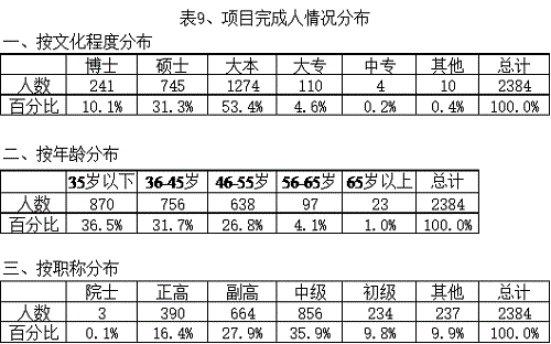 對科技成果完成人分別按文化程度、年齡、職稱的統(tǒng)計結(jié)果如下: