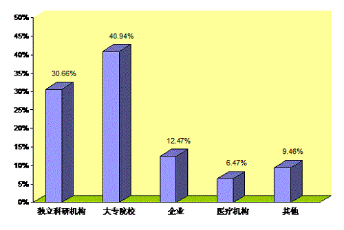 圖2 2009年吉林省科技廳登記科技成果完成人員單位屬性分布