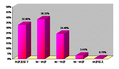 圖3 2009年吉林省科技廳登記科技成果完成人員年齡分布