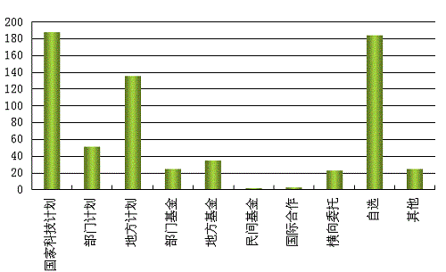 本年度統(tǒng)計(jì)的科技成果中,國(guó)家科技計(jì)劃項(xiàng)目188項(xiàng),占29%;部門計(jì)劃項(xiàng)目51項(xiàng)目,占8%;地方計(jì)劃項(xiàng)目136項(xiàng),占20%;自選項(xiàng)目184項(xiàng),占27%。國(guó)家科技計(jì)劃、地方計(jì)劃、自選項(xiàng)目是課題的主要來源。