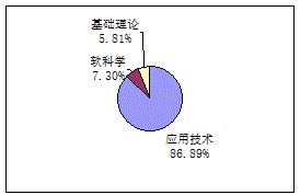 在671項科技成果中,基礎(chǔ)理論成果39項,占成果總數(shù)的5.81%;應(yīng)用技術(shù)成果583項,占成果總數(shù)的86.89%;軟科學(xué)成果49項,占7.3%。