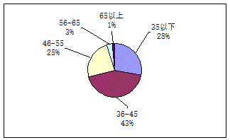 按科技成果完成人員按年齡統(tǒng)計:35歲以下為1641人,36-45歲為2472人,46-55歲為1437人,56-65歲為204人,65歲以上為79人。可以看出35歲以下和36-45歲的科技人員是承擔(dān)科技成果研發(fā)工作的主體。