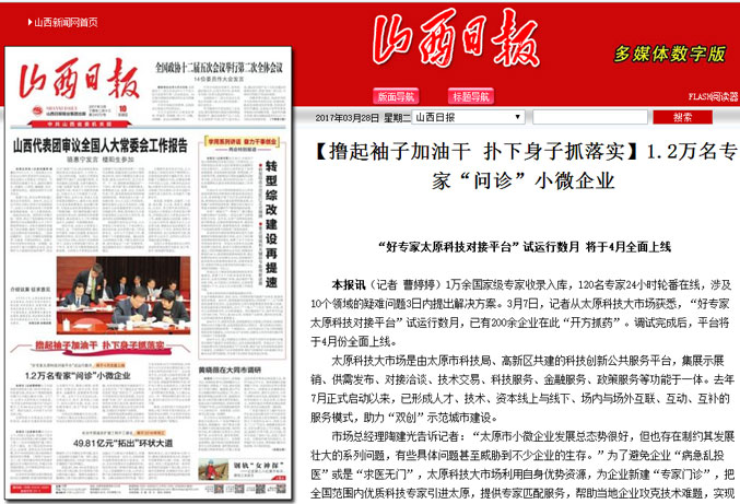 太原科技大市場(chǎng)是由太原市科技局、高新區(qū)共建的科技創(chuàng)新公共服務(wù)平臺(tái),集展示展銷、供需發(fā)布、對(duì)接洽談、技術(shù)交易、科技服務(wù)、金融服務(wù)、政策服務(wù)等功能于一體。去年7月正式啟動(dòng)以來(lái),已形成人才、技術(shù)、資本線上與線下、場(chǎng)內(nèi)與場(chǎng)外互聯(lián)、互動(dòng)、互補(bǔ)的服務(wù)模式,助力“雙創(chuàng)”示范城市建設(shè)。