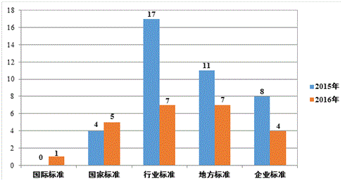 圖 4 2015-2016年陜西省登記成果中標(biāo)準(zhǔn)制定情況(項(xiàng))