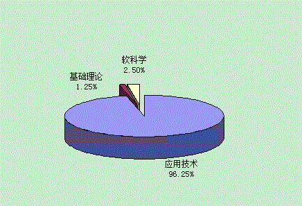 從成果類別看,應(yīng)用技術(shù)類成果539項(xiàng),占成果登記總數(shù)的96.25%;基礎(chǔ)理論類成果7項(xiàng),軟科學(xué)類成果14項(xiàng),各自占登記總數(shù)的1.25%和2.5%。