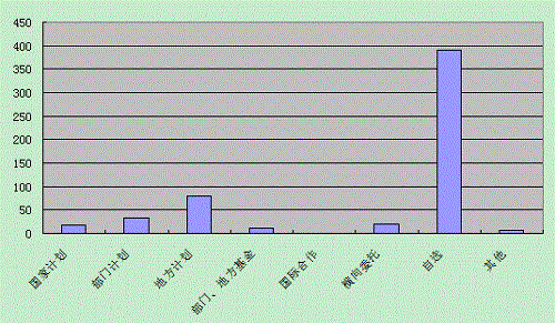 從成果來(lái)源看,國(guó)家計(jì)劃項(xiàng)目占成果總數(shù)的3%,部門(mén)計(jì)劃項(xiàng)目占總數(shù)的6.07%;地方計(jì)劃項(xiàng)目占總數(shù)的14.1%;部門(mén)及地方基金項(xiàng)目占成果總數(shù)的1.96%;國(guó)際合作項(xiàng)目占總數(shù)的0.18%;橫向委托和自選課題項(xiàng)目分別占成果總數(shù)的3.39%和69.6%;其他來(lái)源項(xiàng)目占成果總數(shù)的1.25%。