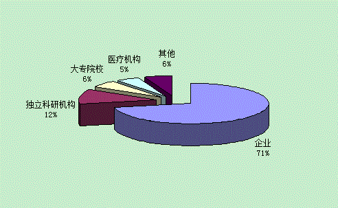 從項(xiàng)目承擔(dān)主體看,企業(yè)承擔(dān)的項(xiàng)目達(dá)到402項(xiàng),占項(xiàng)目總數(shù)的71.79%;獨(dú)立科研機(jī)構(gòu)67項(xiàng),占11.96%;大專院校32項(xiàng),占5.71%;醫(yī)療機(jī)構(gòu)26項(xiàng),占4.64%;其他33項(xiàng),占5.89%。