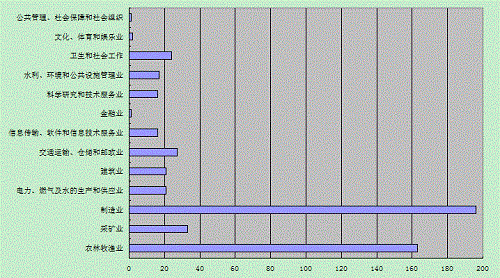 按技術(shù)成果實(shí)際推廣應(yīng)用的行業(yè)分類進(jìn)行統(tǒng)計(jì),農(nóng)林牧漁業(yè)有163項(xiàng),采礦業(yè)33項(xiàng),制造業(yè)196項(xiàng),電力、燃?xì)饧八纳a(chǎn)和供應(yīng)業(yè)21項(xiàng),建筑業(yè)21項(xiàng),交通運(yùn)輸、倉(cāng)儲(chǔ)和郵政業(yè)27項(xiàng),信息傳輸、軟件和信息技術(shù)服務(wù)業(yè)16項(xiàng),金融業(yè)1項(xiàng),科學(xué)研究和技術(shù)服務(wù)業(yè)16項(xiàng),水利、環(huán)境和公共設(shè)施管理業(yè)17項(xiàng),衛(wèi)生和社會(huì)工作24項(xiàng),文化、體育和娛樂(lè)業(yè)2項(xiàng),公共管理、社會(huì)保障和社會(huì)組織1項(xiàng)。