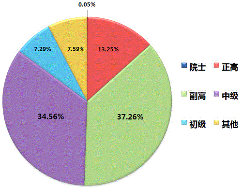 在登記人員中,院士5人次,占全部人員0.05%;正高級(jí)職稱1040人次,占全部人員13.25%;副高職稱2923人次,占全部人員37.26%;中級(jí)職稱2712人次,占全部人員的34.56%;初級(jí)職稱572人次,占全部人員7.29的%;其他人員596人次,占全部人員的7.59%。從職稱構(gòu)成上看,副高人員是質(zhì)檢科研的中堅(jiān)力量。
