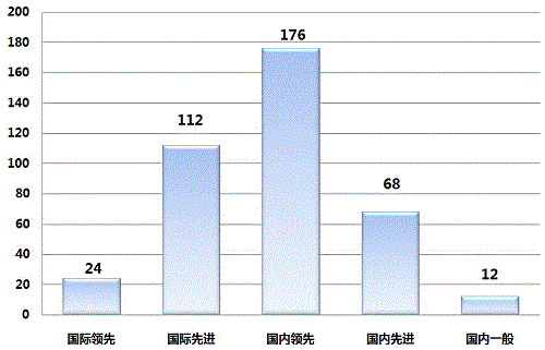 從成果水平上來(lái)看,2016年登記的質(zhì)檢科技成果中,國(guó)際領(lǐng)先的科技成果為24項(xiàng),占可統(tǒng)計(jì)數(shù)據(jù)的6.12%;國(guó)際先進(jìn)的科技成果為112項(xiàng),占可統(tǒng)計(jì)數(shù)據(jù)的28.57%;國(guó)內(nèi)領(lǐng)先的科技成果為176項(xiàng),占可統(tǒng)計(jì)數(shù)據(jù)的44.90%;國(guó)內(nèi)先進(jìn)的科技成果為68項(xiàng),占可統(tǒng)計(jì)數(shù)據(jù)的17.35%;國(guó)內(nèi)一般的科技成果為12項(xiàng),占可統(tǒng)計(jì)數(shù)據(jù)的3.06%。因此,國(guó)內(nèi)領(lǐng)先成果,在質(zhì)檢科技成果中占比較大。