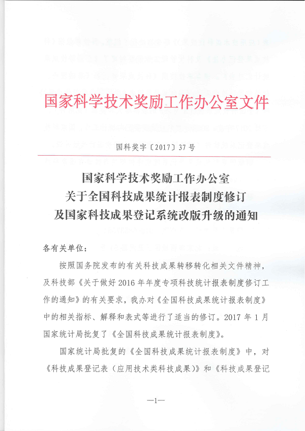 關于全國科技成果統(tǒng)計報表制度修訂及國家科技成果登記系統(tǒng)改版升級的通知