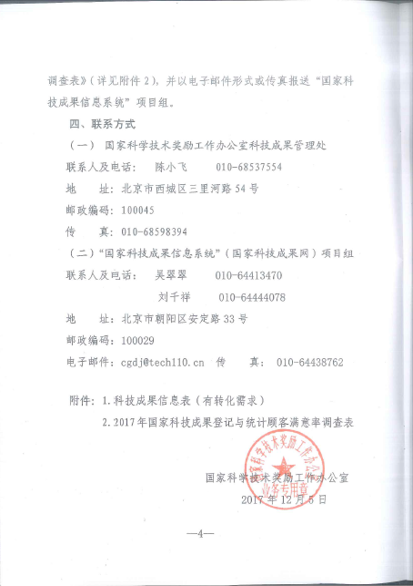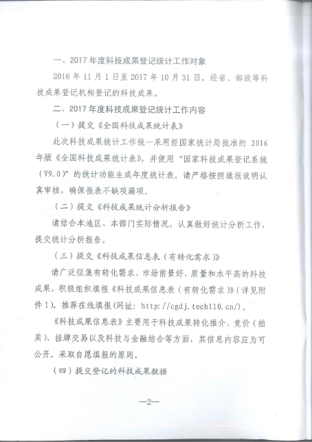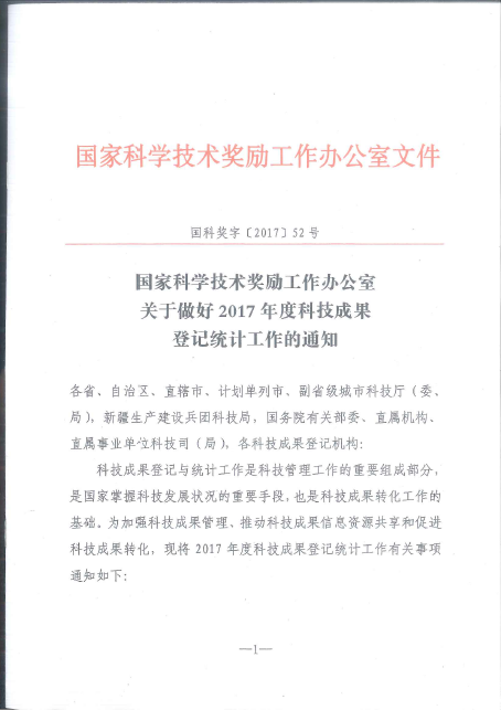 國(guó)家科學(xué)技術(shù)獎(jiǎng)勵(lì)工作辦公室關(guān)于做好2017年度科技成果登記與統(tǒng)計(jì)工作的通知