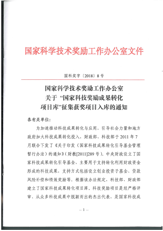 國家科學(xué)技術(shù)獎勵工作辦公室關(guān)于做好“國家科技獎勵成果轉(zhuǎn)化項目庫”征集獲獎項目入庫的通知