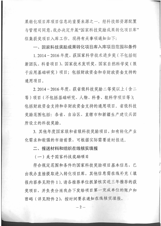 關(guān)于“國家科技獎勵成果轉(zhuǎn)化項目庫”征集獲獎項目入庫的通知.zip