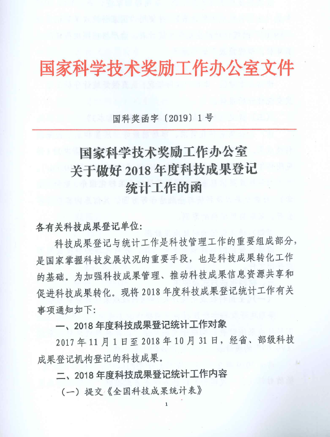 登記 | 關(guān)于做好2018年度科技成果登記統(tǒng)計(jì)工作的通知