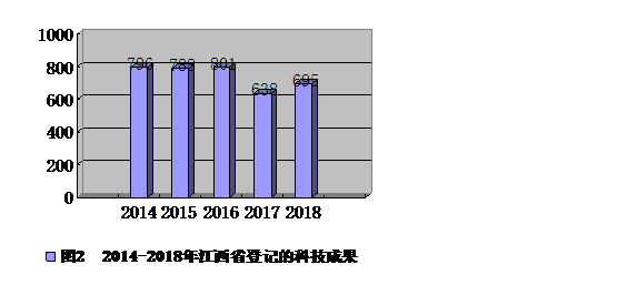 從近五年的情況來看,江西省的科技成果登記總量呈波動狀態(tài)(見圖2)。