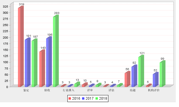 2018年度內(nèi)蒙古自治區(qū)登記成果712項,其中:鑒定項目184項,驗收項目281項,評審項目8項,行業(yè)準(zhǔn)入項目13項,評估項目7項,機(jī)構(gòu)評價99項,結(jié)題項目120項。統(tǒng)計顯示,2018年自治區(qū)科學(xué)技術(shù)登記成果中,鑒定登記成果和驗收登記成果數(shù)共占成果總數(shù)的65.3%,通過鑒定與驗收的科技成果一直是自治區(qū)科技成果登記的主要來源,但近年來,國家取消了科技成果鑒定,今年鑒定成果登記的數(shù)量較上年有所減少,驗收、機(jī)構(gòu)評價和結(jié)題的成果數(shù)量大幅增加。數(shù)據(jù)顯示,2018年全區(qū)登記成果較上年增加179項,較上年增長33.6%,創(chuàng)歷史新高,其中鑒定項目減少7項,驗收項目增加85項,評審項目增加3項,行業(yè)準(zhǔn)入增加10項,評估項目增加3項,機(jī)構(gòu)評價增加47項,結(jié)題項目增加38項。(見圖表1)