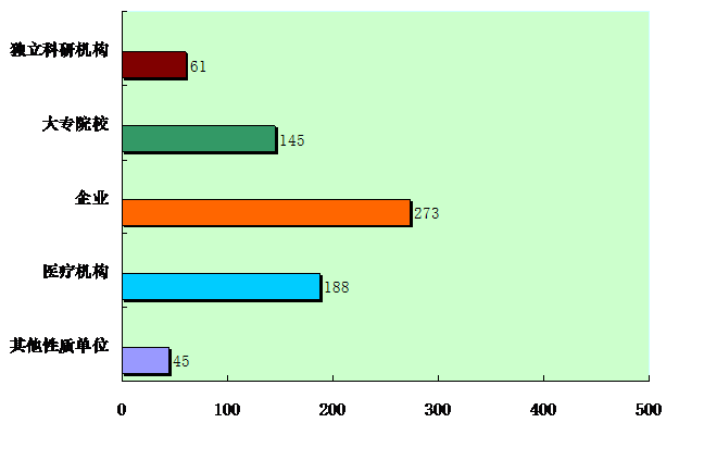 在登記的712項科技成果中,由獨立科研機(jī)構(gòu)完成的科技成果61項,占成果總數(shù)的8.6%;大專院校完成的科技成果145項,占成果總數(shù)的20.4%;企業(yè)完成的科技成果273項,占成果總數(shù)的38.3%(其中:轉(zhuǎn)制型企業(yè)完成的科技成果92項,占企業(yè)完成成果總數(shù)的33%);醫(yī)療機(jī)構(gòu)完成的科技成果188項,占成果總數(shù)的26.4%;其他性質(zhì)單位完成的科技成果45項,占成果總數(shù)的6.3%。(見圖表3)