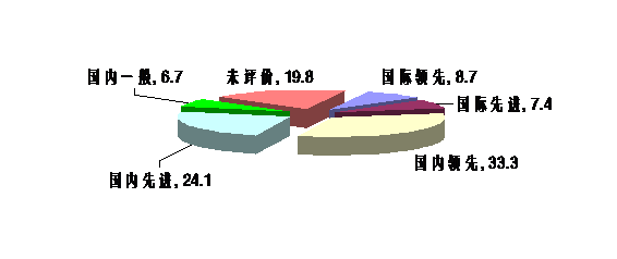 根據(jù)登記成果數(shù)據(jù)分析,國際領(lǐng)先的成果有47項,占應(yīng)用技術(shù)成果總數(shù)的8.7%;國際先進(jìn)的成果有40項,占應(yīng)用技術(shù)成果總數(shù)的7.4%;國內(nèi)領(lǐng)先科技成果有170項,占應(yīng)用技術(shù)成果總數(shù)的33.3%;國內(nèi)先進(jìn)的成果有130項,占應(yīng)用技術(shù)成果總數(shù)的24.1%;國內(nèi)一般及未評價的成果143項,占應(yīng)用技術(shù)成果總數(shù)的26.5%。統(tǒng)計顯示,國際先進(jìn)、國際領(lǐng)先的只有87項,只占應(yīng)用技術(shù)總數(shù)的16.1%。這充分說明內(nèi)蒙古中低水平的科技成果比較多,國際高水平技術(shù)的科技成果比較少,所以,內(nèi)蒙古經(jīng)濟(jì)與科技的發(fā)展,還有相當(dāng)大的潛力可發(fā)掘。(見圖表11)