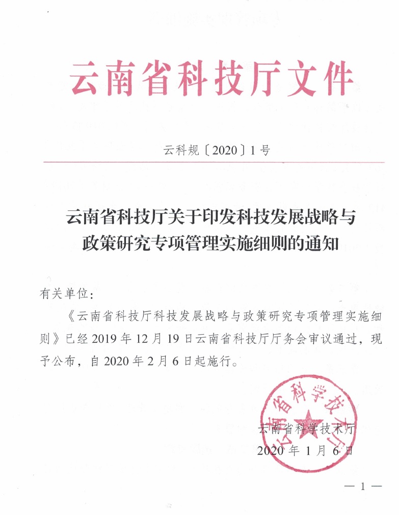 云南省科技廳關(guān)于印發(fā)科技發(fā)展戰(zhàn)略與政策研究專項管理實施細則的通知