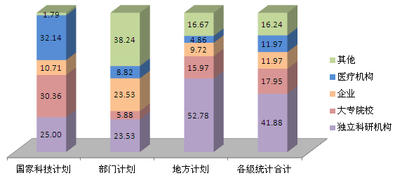 2、科技計劃項目成果的完成單位分布