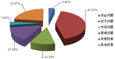 在289項應用技術成果中,有26項未應用。其中有11項因技術問題未應用,另有管理問題4項,市場問題3項,資金問題和政策因素各1項(見圖10)。