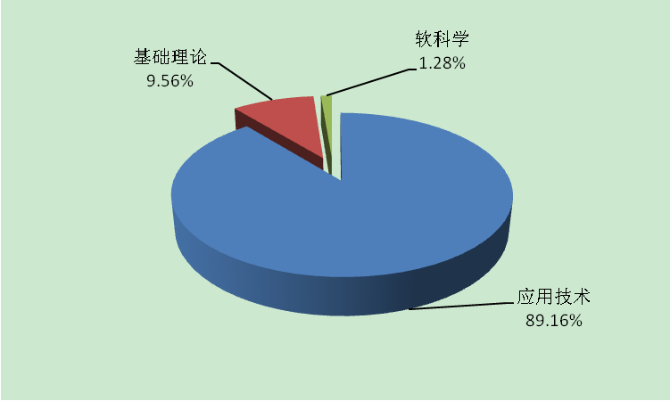 2019年度河南省共登記科技成果1956項,其中應(yīng)用技術(shù)類成果1744項,占全部成果的89.16%;基礎(chǔ)理論類成果187項,占全部成果的9.56%;軟科學(xué)類成果25項,占全部成果的1.28%。