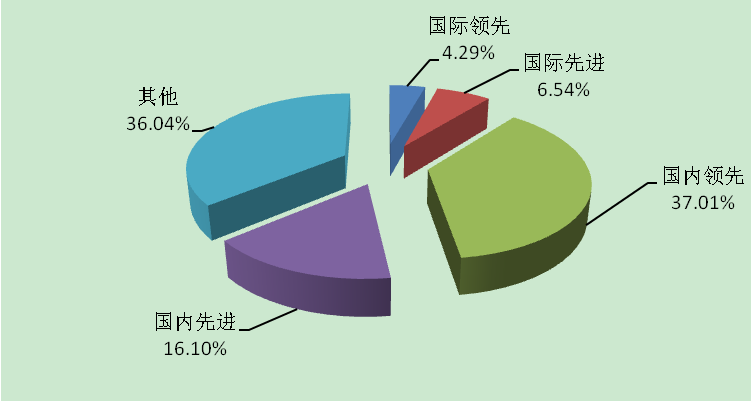 2019年度河南省登記的1956項科技成果中,達到國際領(lǐng)先水平的項目84項,占全部成果的4.29%,;達到國際先進水平的項目128項,占全部成果的6.54%;達到國內(nèi)領(lǐng)先水平的項目724項,占全部成果的37.01%;達到國內(nèi)先進水平的項目315項,占全部成果的16.10%,其他項目共705項,占全部成果的36.04%。