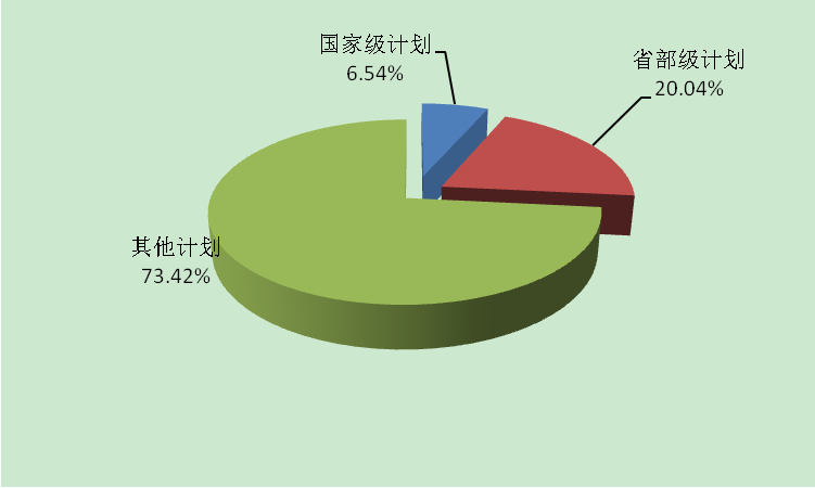 2019年度河南省登記的1956項成果中,來自國家級計劃項目的有128項,占6.54%,來自省部級計劃項目的392項,占20.04%,其它類項目1436項,占73.42%。