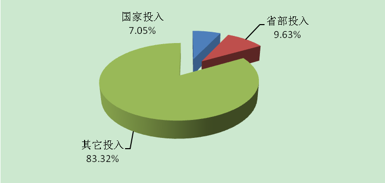 2019年度河南省登記的1956項成果中,共投入資金58.8828億元,其中國家投入4.1506億元,占7.05%;省部級投入5.6703億元,占9.63%;其它資金投入49.0619億元,占83.32%。項目資金投入主要來自于項目承擔(dān)單位。