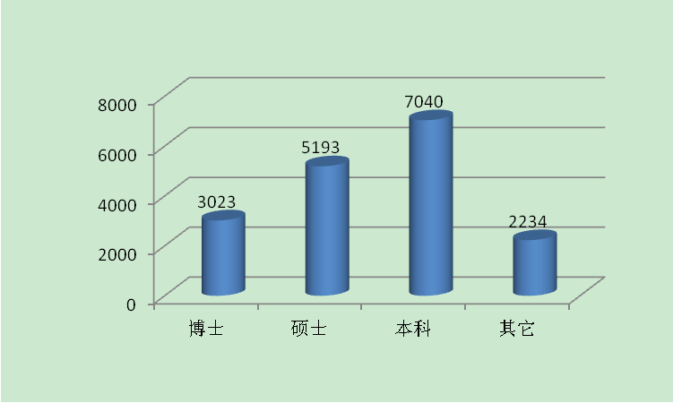 2019年度河南省登記的1956項成果中,項目完成人共有17490人,其中博士生3023人,占17.28%;碩士生5193人,占29.69%;本科生7040人,占40.25%;其它學(xué)歷2234人,占12.77%。