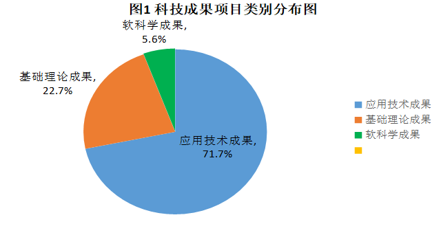 2019年我區(qū)共登記科技成果233項。其中應(yīng)用技術(shù)成果167項,占71.7%;基礎(chǔ)理論成果53項,占22.7%;軟科學(xué)成果13項,占5.6%。應(yīng)用技術(shù)類科技成果總量較上年增長7.1%,在全區(qū)科技成果中占主要地位,如下圖1所示。