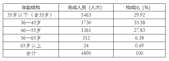 2019年登記的科技成果涉及到的完成人員共4890人次。從學歷構(gòu)成、年齡結(jié)構(gòu)、技術(shù)職稱構(gòu)成分析得出中青年科技人員是科技成果研究人員的主體,這表明重慶市科技工作者的隊伍中,高學歷者逐漸增多,創(chuàng)新力量增強,科技發(fā)展的后勁更足。