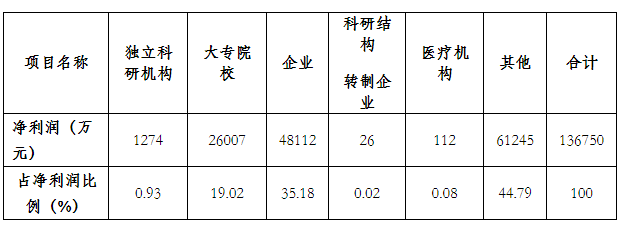 表14 機構(gòu)在應(yīng)用科技成果凈利潤的構(gòu)成表