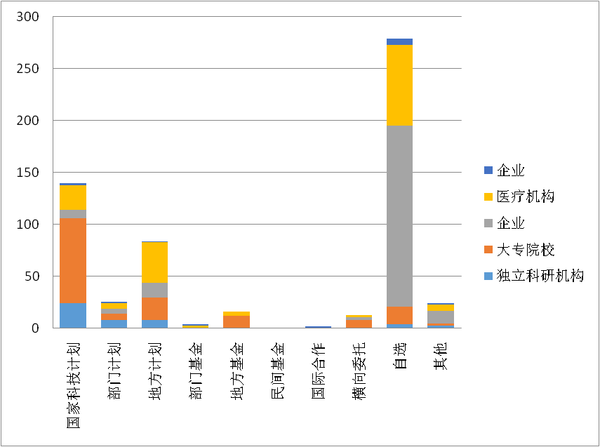 據(jù)統(tǒng)計,登記成果第一完成單位分布主要集中在企業(yè)。其中企業(yè)完成的項目占總項目的36.90%,其中自選課題中企業(yè)完成項目占總項目的62.37%,醫(yī)療機構(gòu)自選完成的項目為78項,占總項目的27.96%。(見圖2)。
