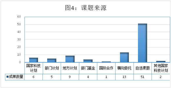 2019年中鋼集團(tuán)登記入庫(kù)的科技成果,課題主要來自國(guó)家科技計(jì)劃、部門計(jì)劃、地方計(jì)劃、部門基金、國(guó)際合作、橫向委托、自選課題、其他國(guó)家科技計(jì)劃8類。其中自選課題占總登記成果的56%,承擔(dān)國(guó)家、地方計(jì)劃的成果占18.7%。具體課題來源情況詳見圖4)