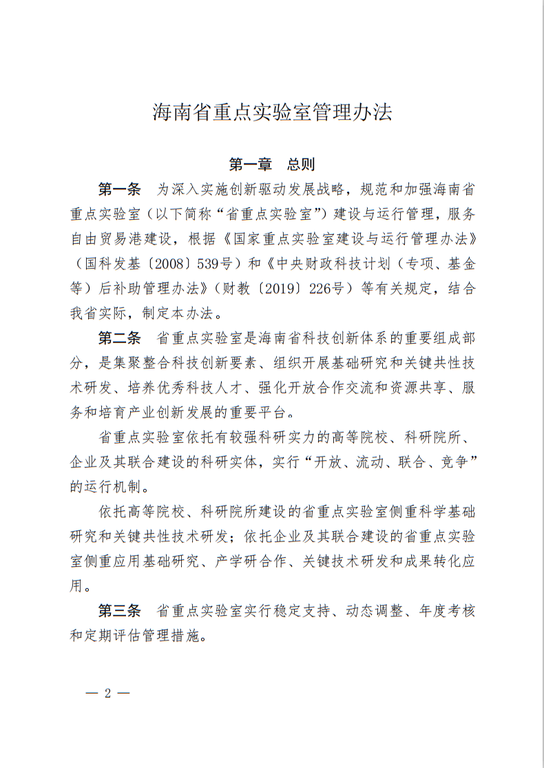 海南省科學(xué)技術(shù)廳關(guān)于印發(fā)《海南省重點(diǎn)實(shí)驗(yàn)室管理辦法》的通知