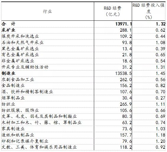分產(chǎn)業(yè)部門(mén)看,高技術(shù)制造業(yè)研究與試驗(yàn)發(fā)展(R&D)經(jīng)費(fèi)3804.0億元,投入強(qiáng)度(與營(yíng)業(yè)收入之比)為2.41%,比上年提高0.14個(gè)百分點(diǎn);裝備制造業(yè)研究與試驗(yàn)發(fā)展(R&D)經(jīng)費(fèi)7868.0億元,投入強(qiáng)度為2.07%,比上年提高0.16個(gè)百分點(diǎn)。在規(guī)模以上工業(yè)企業(yè)中,研究與試驗(yàn)發(fā)展(R&D)經(jīng)費(fèi)投入超過(guò)500億元的行業(yè)大類(lèi)有9個(gè),這9個(gè)行業(yè)的經(jīng)費(fèi)占全部規(guī)模以上工業(yè)企業(yè)研究與試驗(yàn)發(fā)展(R&D)經(jīng)費(fèi)的比重為69.3%(詳見(jiàn)附表1)。