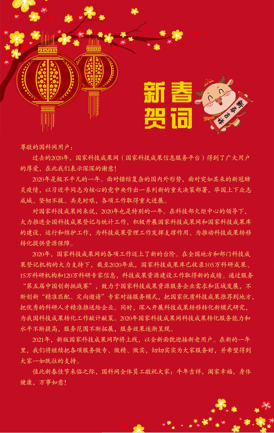 新春 | 國(guó)家科技成果網(wǎng)2021年新春賀詞發(fā)布