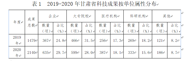 2020年度甘肅省科技成果統(tǒng)計(jì)分析報(bào)告