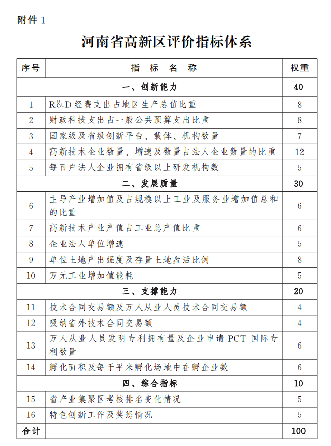 附件:1.河南省高新區(qū)評(píng)價(jià)指標(biāo)體系
