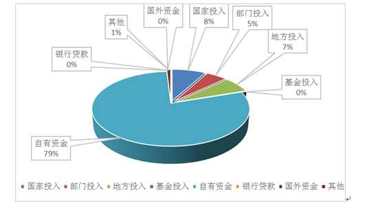 2020年度登記的科技成果中,經(jīng)費(fèi)實(shí)際投入額262937萬元,其中:國家投入21040萬元,占8 %;部門投入13005萬元,占4.95%;地方投入17773萬元,占6.76%;基金投入245萬元,占0.09%;自有資金208395萬元,占79.26%;銀行貸款20萬元,占0.01%;國外資金105萬元,占0.04%;其他資金2354萬元,占0.9%。研發(fā)單位自有資金在總資金投入中占有較大的比重。