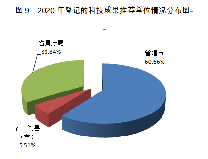 2020年度河南省登記的2524項(xiàng)成果中,省轄市推薦的1531項(xiàng),占60.66%;省直管縣(市)推薦的139項(xiàng),占5.51%;省屬?gòu)d局推薦的854項(xiàng),占33.84%。